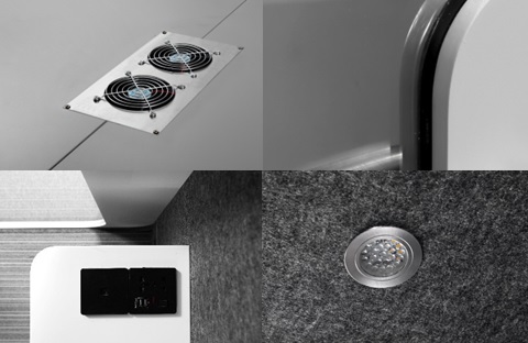 Soundproof aluminum plate, imported sound-absorbing cotton, imported sound-absorbing board, imported multi-layer splints, 10mm tempered soundproofed glass, advanced carpet, sprayed hardwood, zinc alloy brushed door lock, ABS reinforced silent plastic wheel, circulating pumping system, induction lamp (volume: 1.8 cubic, net weight 330KG, gross weight 410KG)